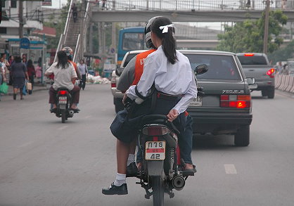 ualmindelig at man ser motorcykler med op til 6 personer.
